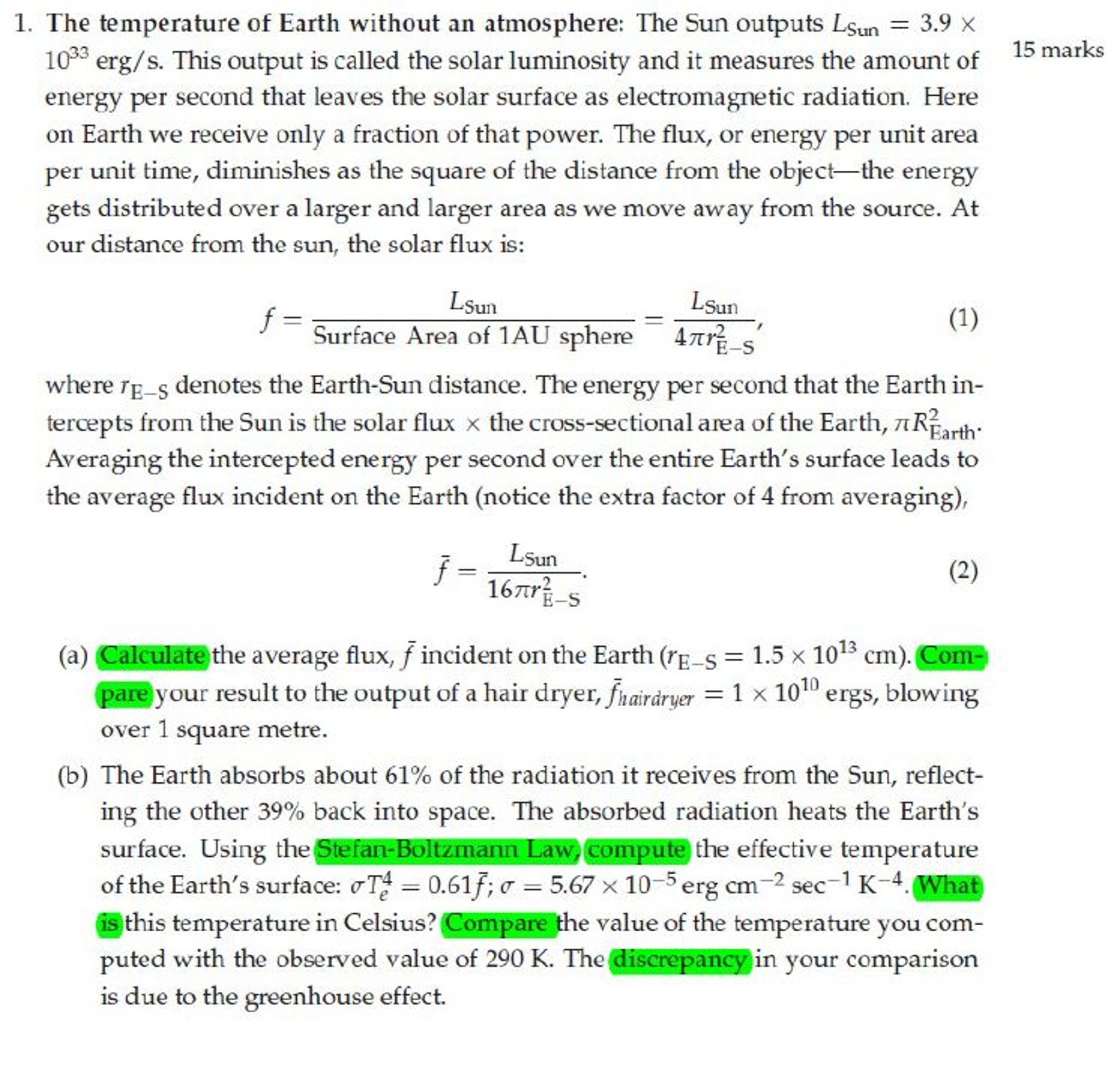 Solved A The Sun S Luminosity Is L 3 839 Times 10 33 Chegg Com